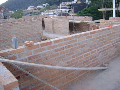Siamo al primo piano. Mancano 5.700 mattoni per arrivare ai tetti, che soni due, quello del salone e quello dei due appartamentini.